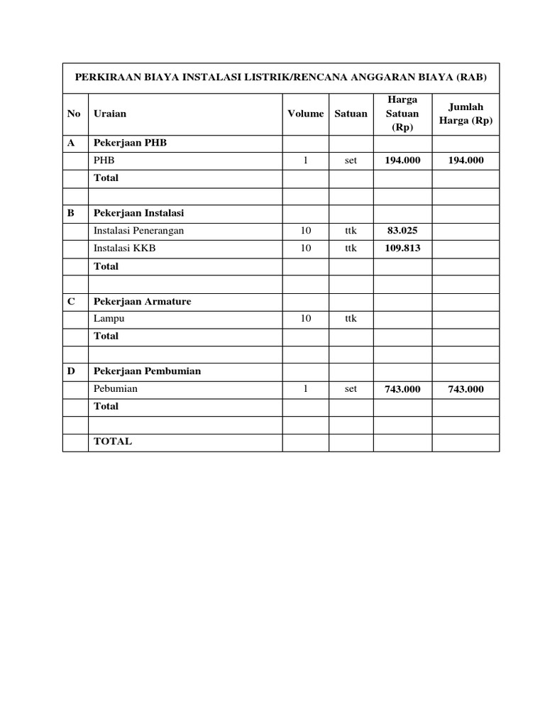 08 09 2022 · Rencana Anggaran Biaya RAB kerap dibutuhkan dalam berbagai hal terutama untuk urusan bisnis Bagi pekerja kantor kontraktor atau sejenisnya maka RAB bukanlah hal yang asing lagi karena setiap proyek dan kebutuhan kantor harus direncanakan terlebih dahulu dan dibuat secara rapi agar lebih mudah dipahami